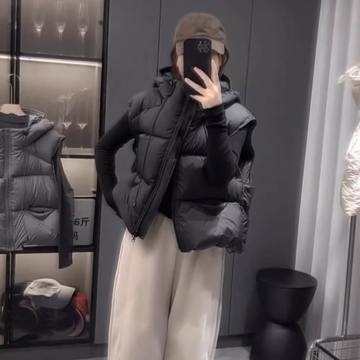 2025韩宽松高级感小个子背心坎肩外套 新款 羽绒马甲女短款 连帽冬季