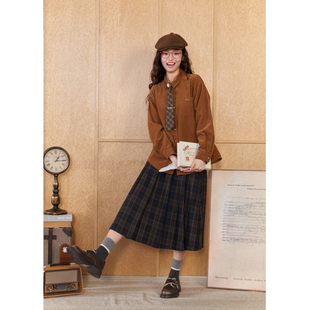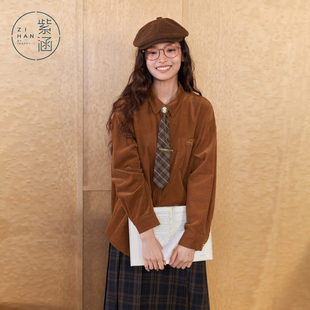 复古100%纯棉显瘦高级感内搭上衣 新款 紫涵灯芯绒领带衬衫 女冬季