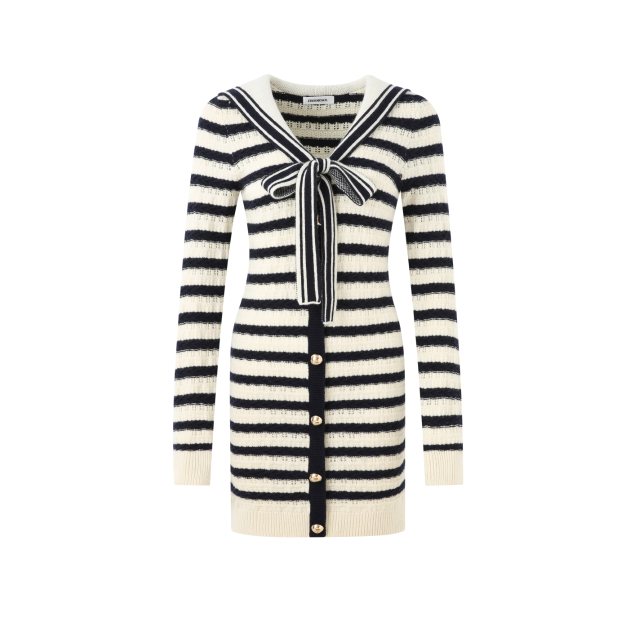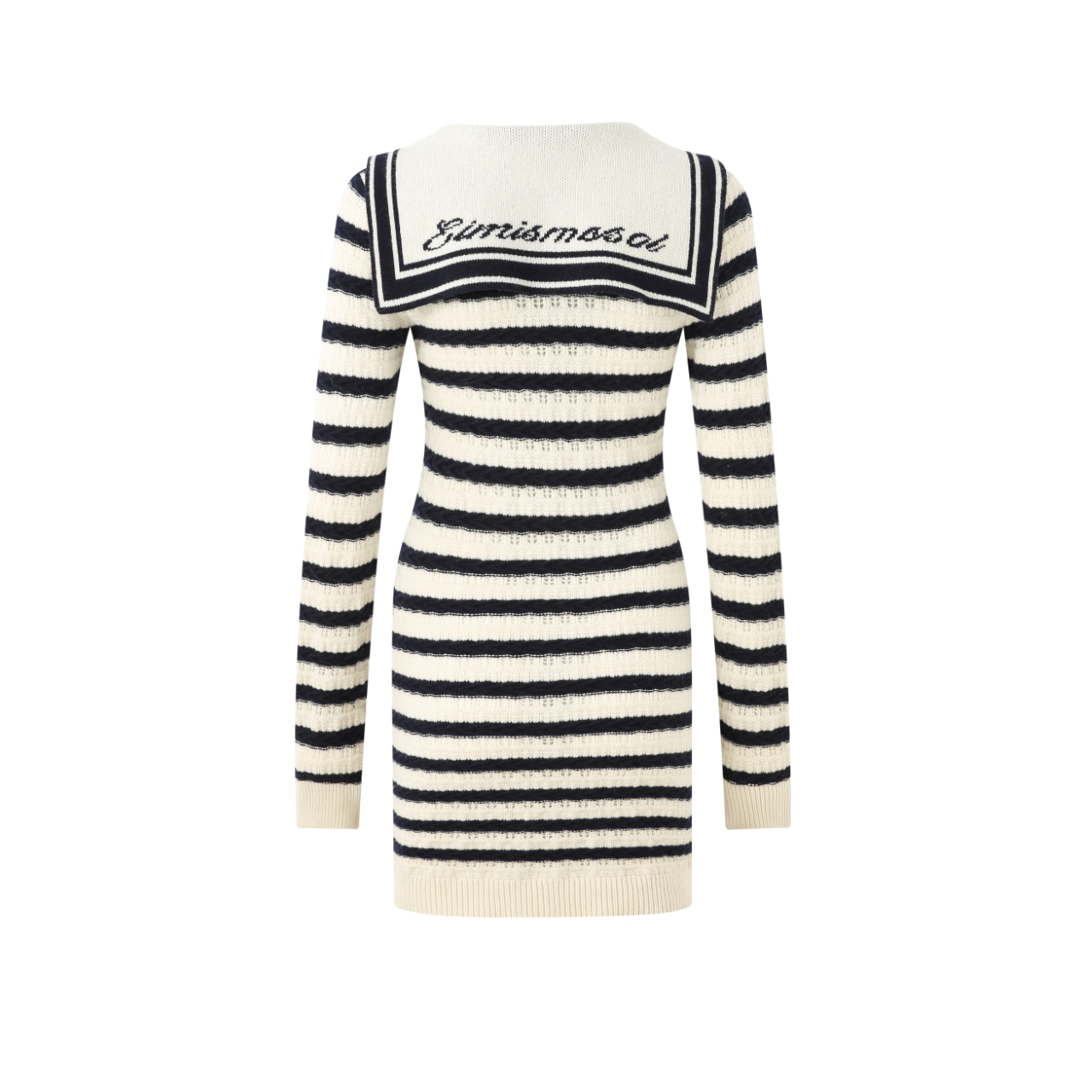 EIMISMOSOL 海军蓝条纹毛织连衣裙 2024秋冬长袖