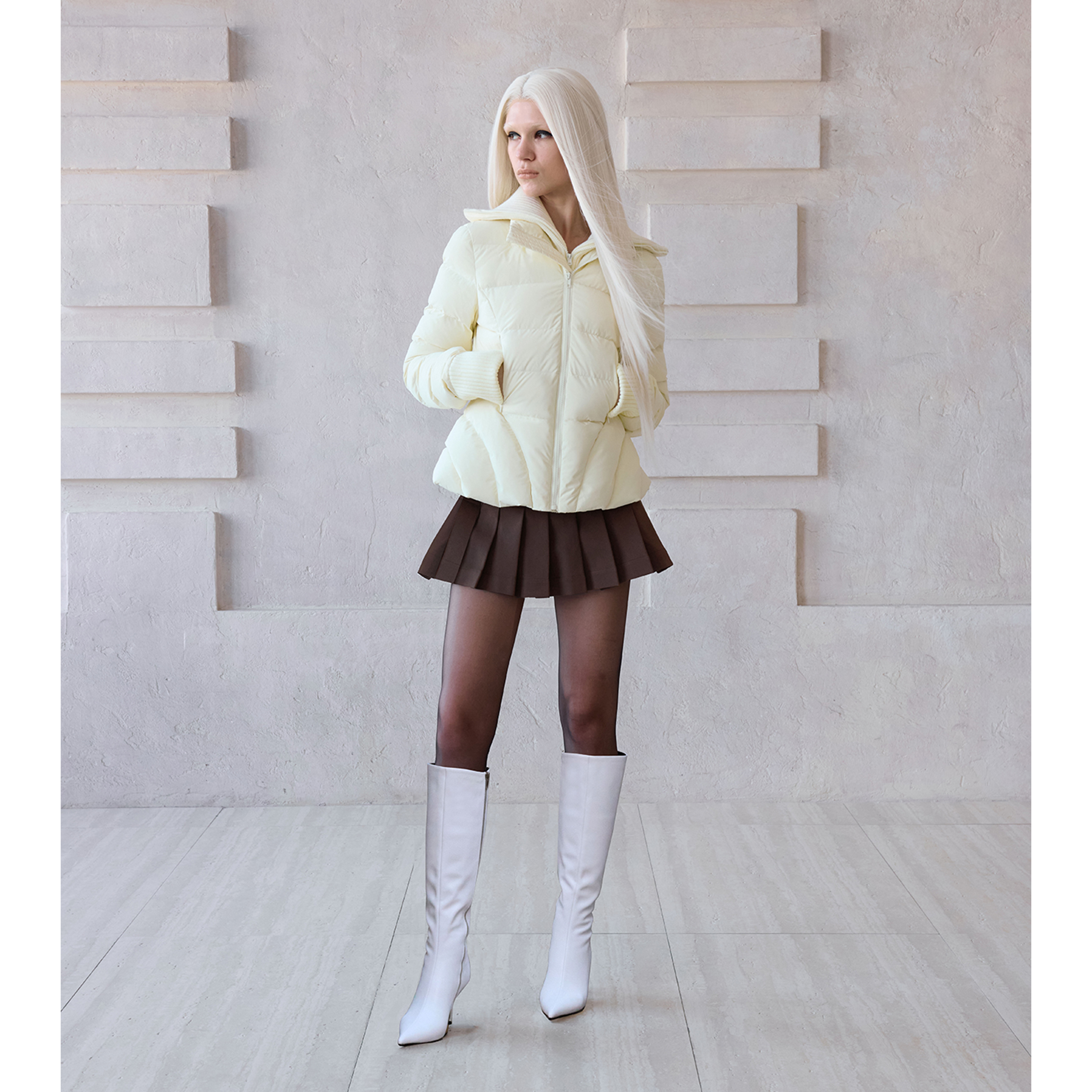 Aeaea解构收腰修身 双领罗纹胸衣羽绒服外套90白鸭绒2024秋冬