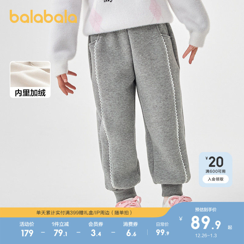 儿童长裤 厚款 女童加绒保暖束脚裤 休闲裤 甜美洋气 冬季 巴拉巴拉童装