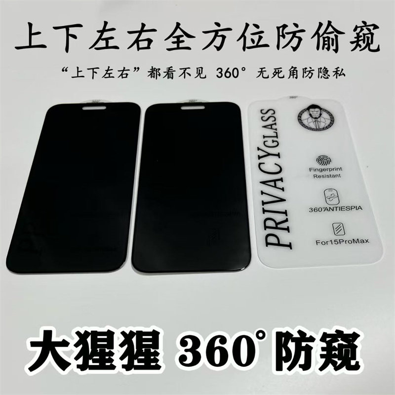 适用苹果17ProMax人头猩360度防窥膜16Pro 16E防静电iphone15高铝大弧14全屏XR钢化膜XSMax手机膜XS高清13