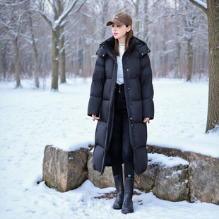 爆款 冬季 宽松超厚过膝中长白鸭绒外套 羽绒服女长款 掘鹿2025年新款