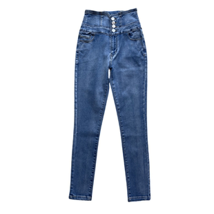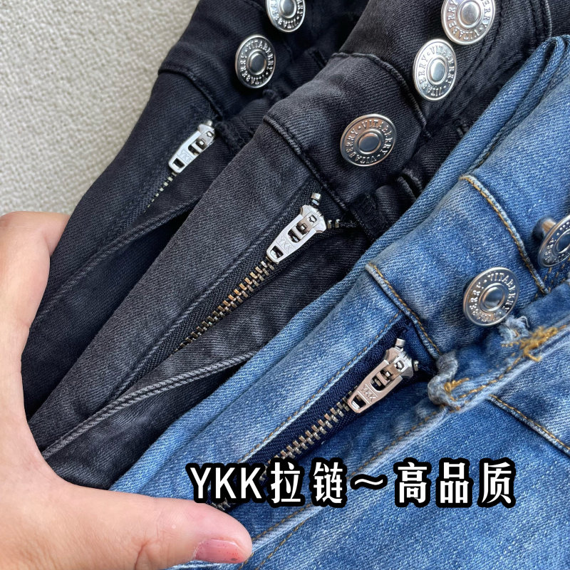 收腹显瘦塑形高弹力小脚长裤 4粒扣修身 女 超高腰洋气牛仔裤 显腿长