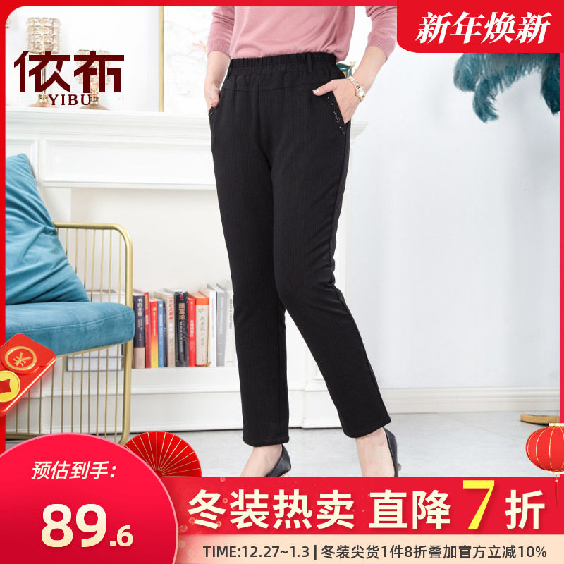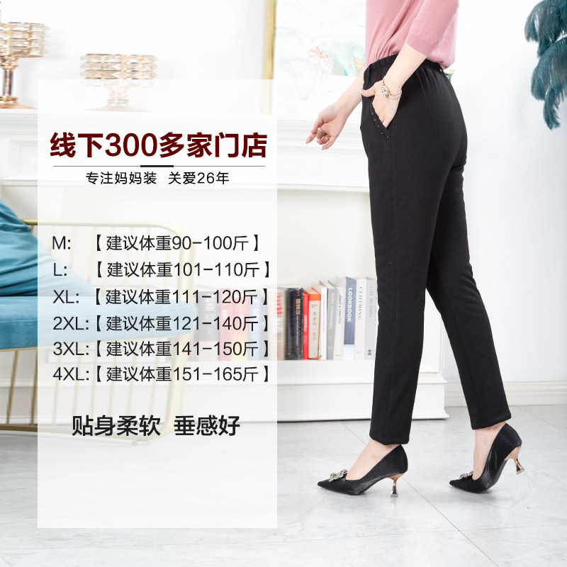 冬季 宽松保暖裤 新款 中老年百搭竖条纹休闲裤 子 加厚棉裤 依佈妈妈装