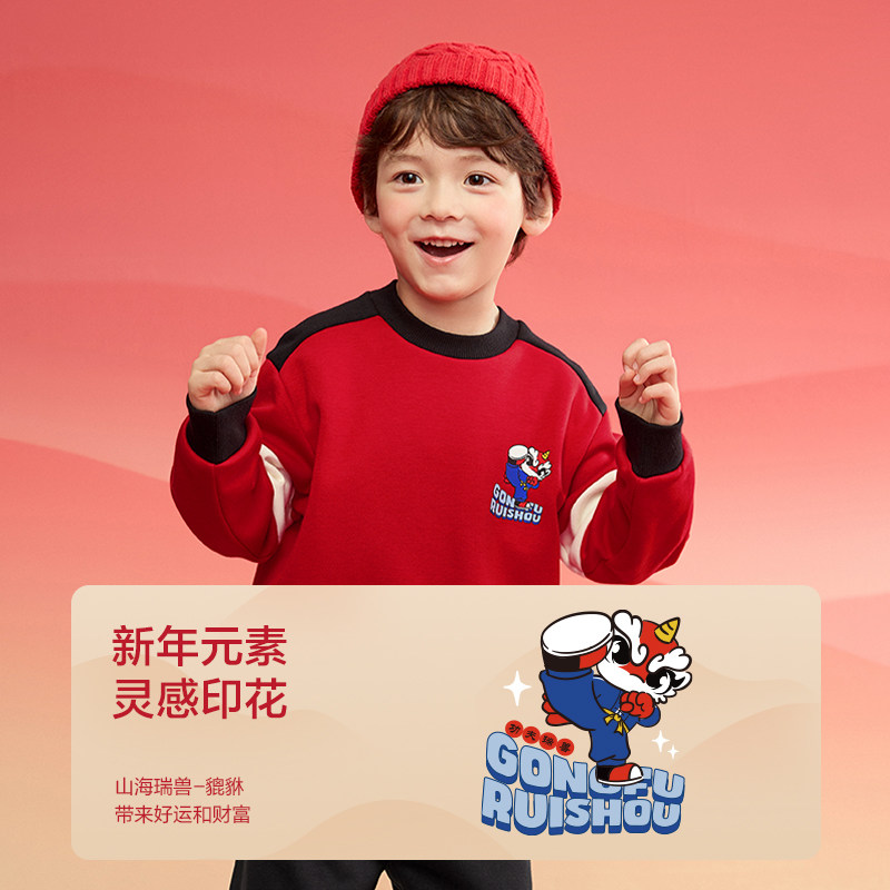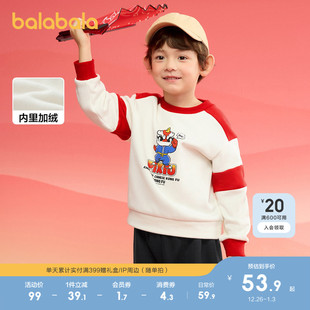 t恤潮 宽松加绒上衣长袖 巴拉巴拉童装 儿童卫衣女童男童2025春秋装