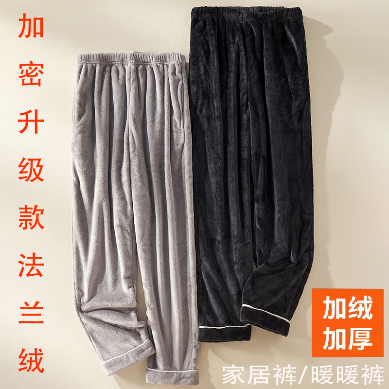 加绒加厚珊瑚绒裤 冬季 老年人暖暖裤 法兰绒宽松大码 男士 家居裤 睡裤