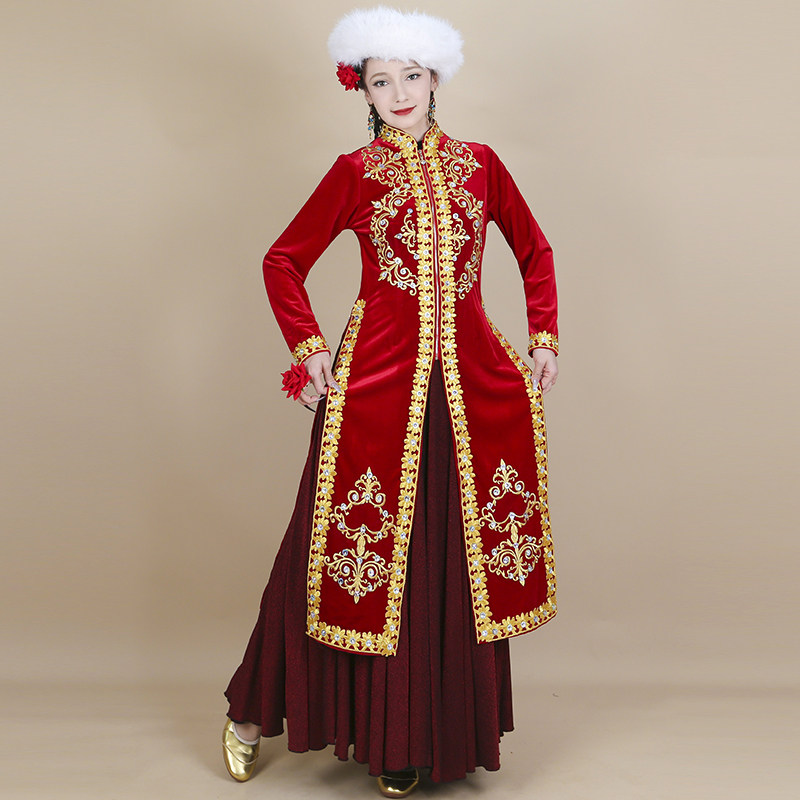 天山美翼舞蹈演出服装 舞台表演外套维吾尔族女士绣花长马甲 高定款
