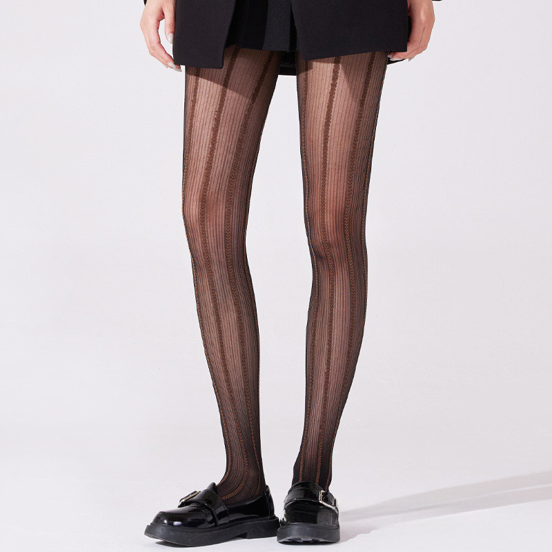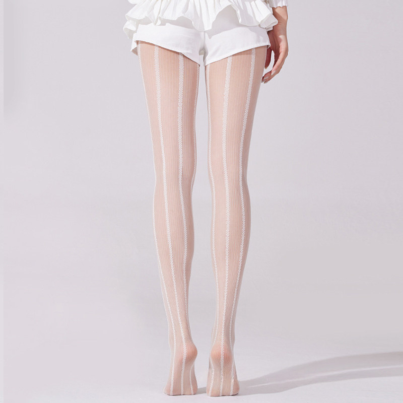洛丽塔风白丝爱心竖条纹灰紫咖色夏季 袜 薄丝袜提花袜辣妹连裤