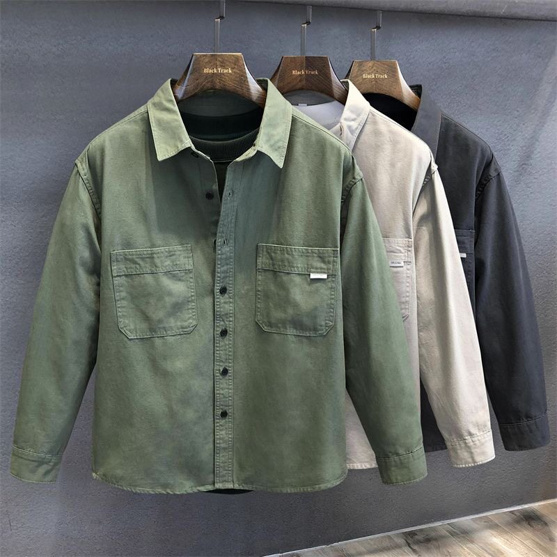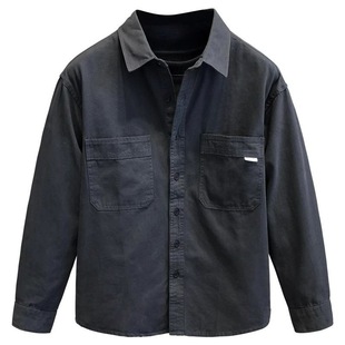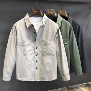 春季 男装 潮流重磅新款 宽松开衫 外套 日系工装 夹克复古纯棉长袖 衬衫