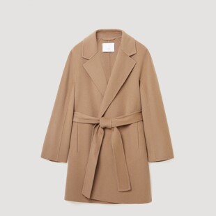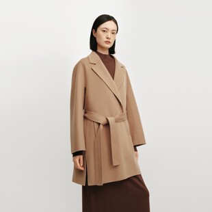 OVV秋冬热卖 平驳领随附腰带90支羊毛双面呢大衣 女装