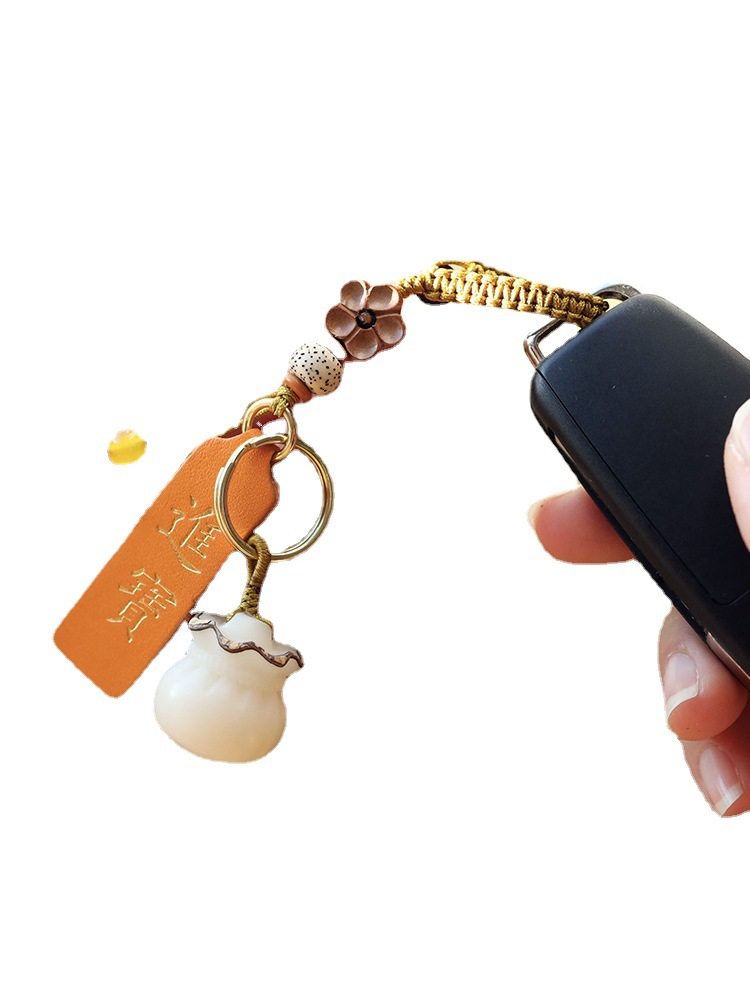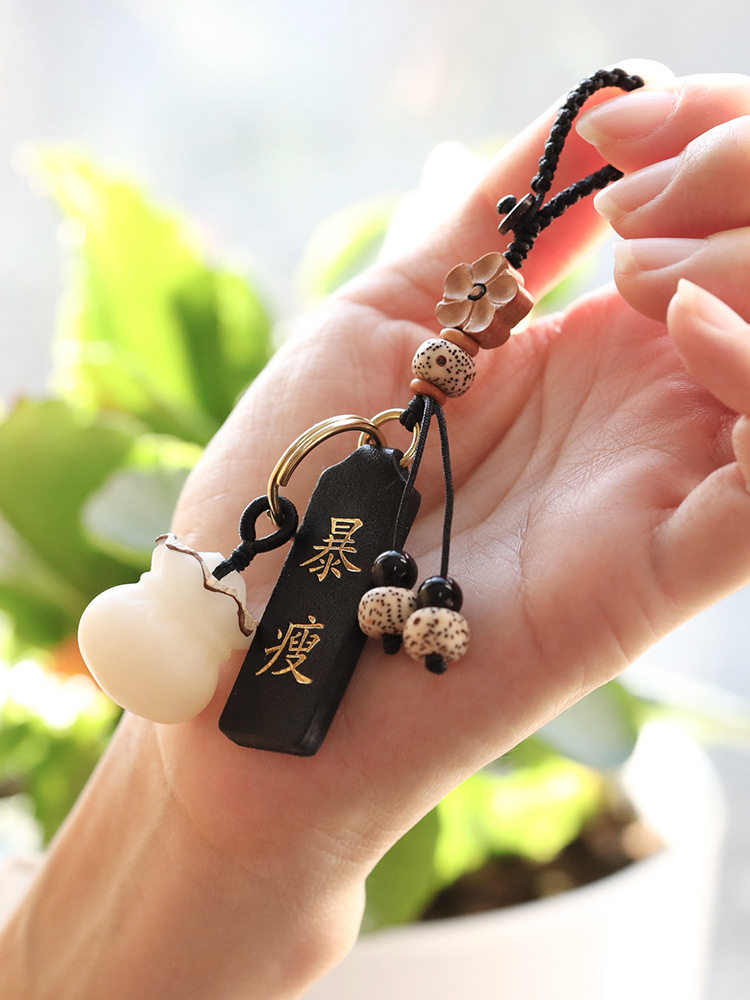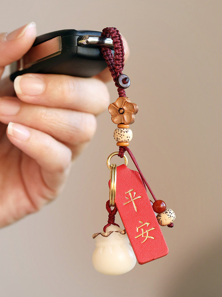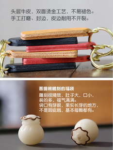 创意牛皮祈福牌新月菩提根福袋汽车钥匙扣挂件男女个性 平安符饰品
