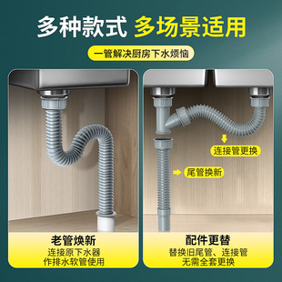 厨房下水管排水管水槽洗碗池通用下水器软套装 道洗菜盆下水管配件