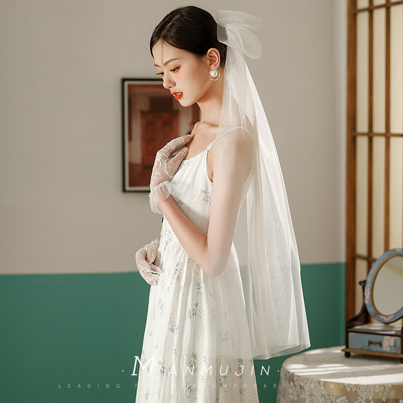 新娘头纱头饰超仙结婚拍照道具短款 森系婚纱头纱领证白色头纱简约