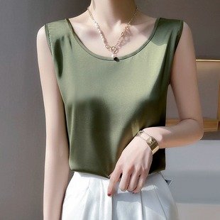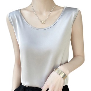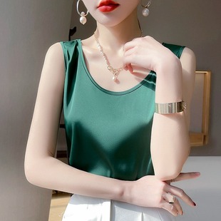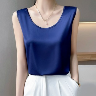 真丝吊带女外穿宽松配西装 圆领宽带背心上衣醋酸缎面 内搭打底无袖
