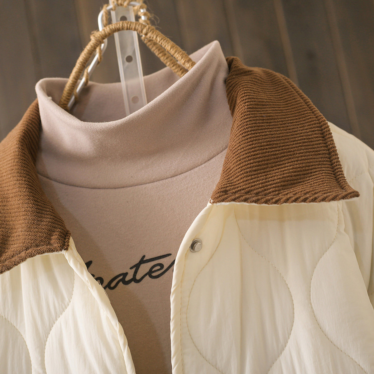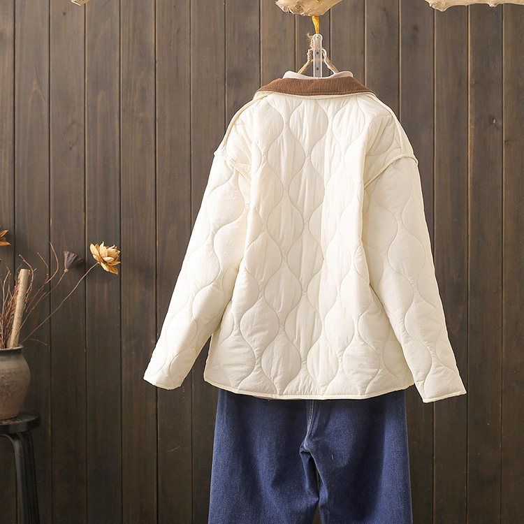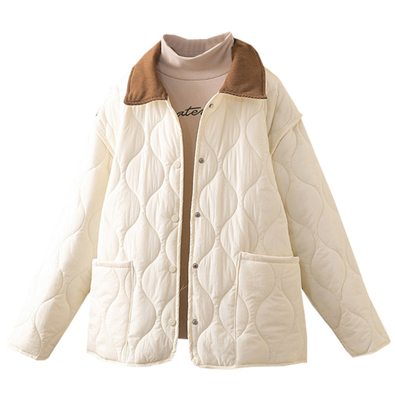 秋冬大码 轻薄夹棉保暖棉衣外套潮 200斤撞色翻领菱格羽绒棉服韩版