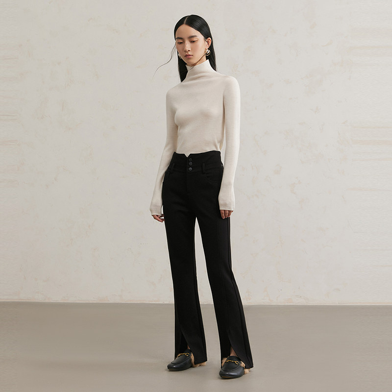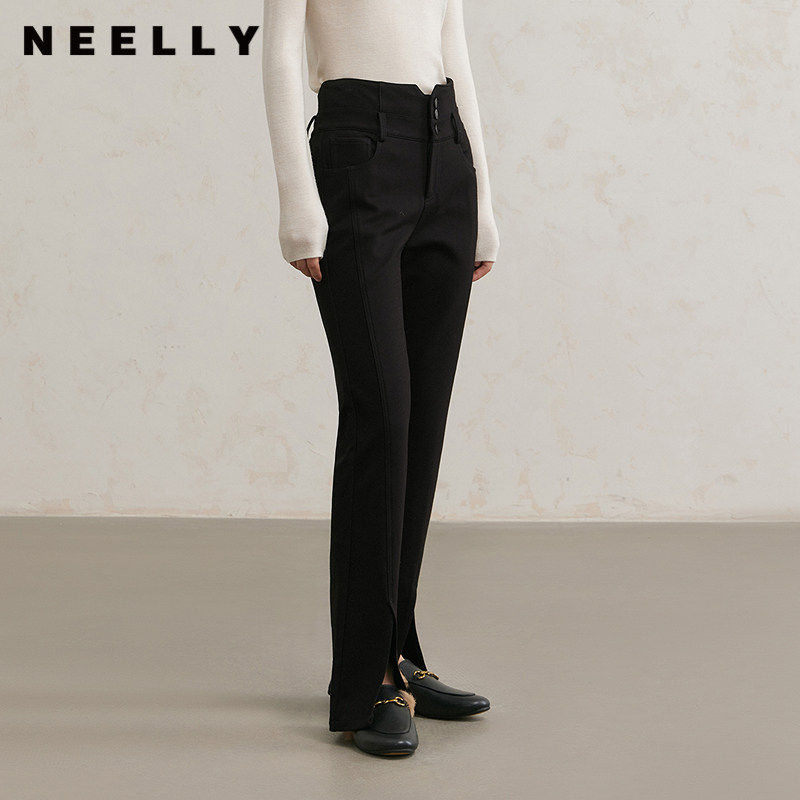 冬季 女百搭喇叭裤 新款 显瘦开叉长裤 高腰修身 NEELLY纳俪商场同款