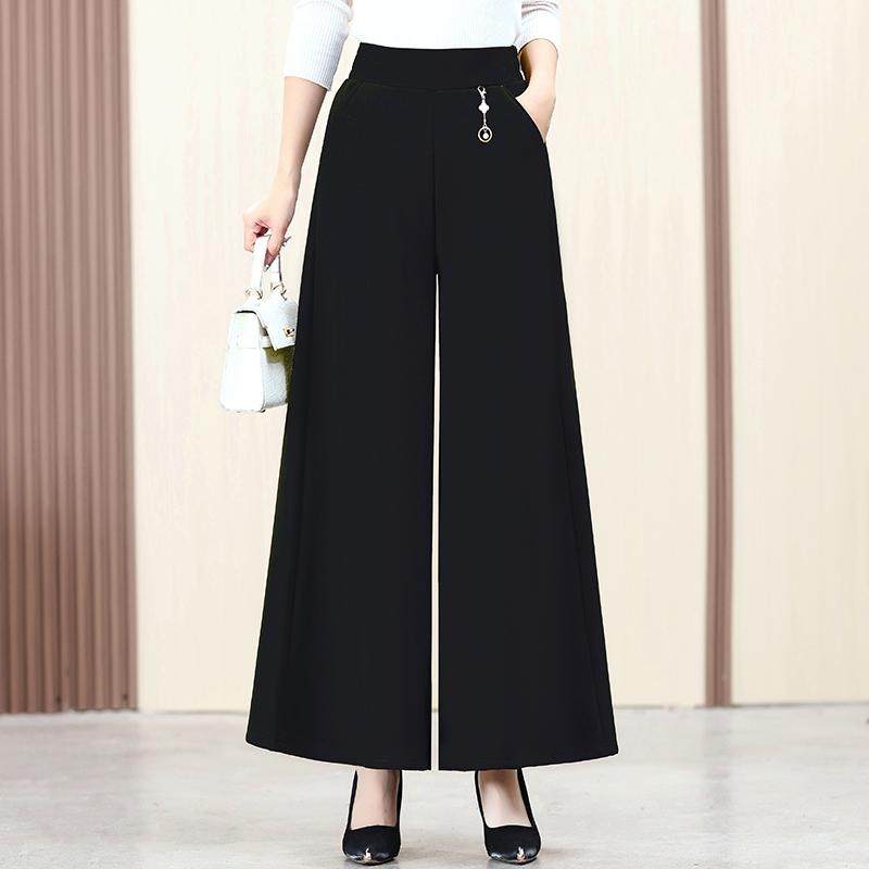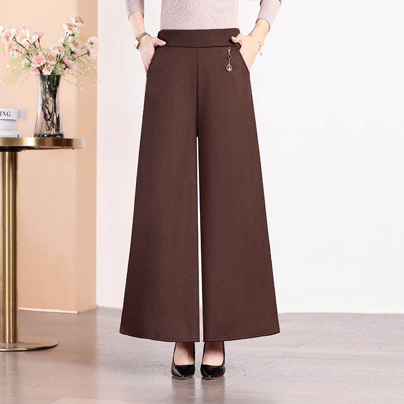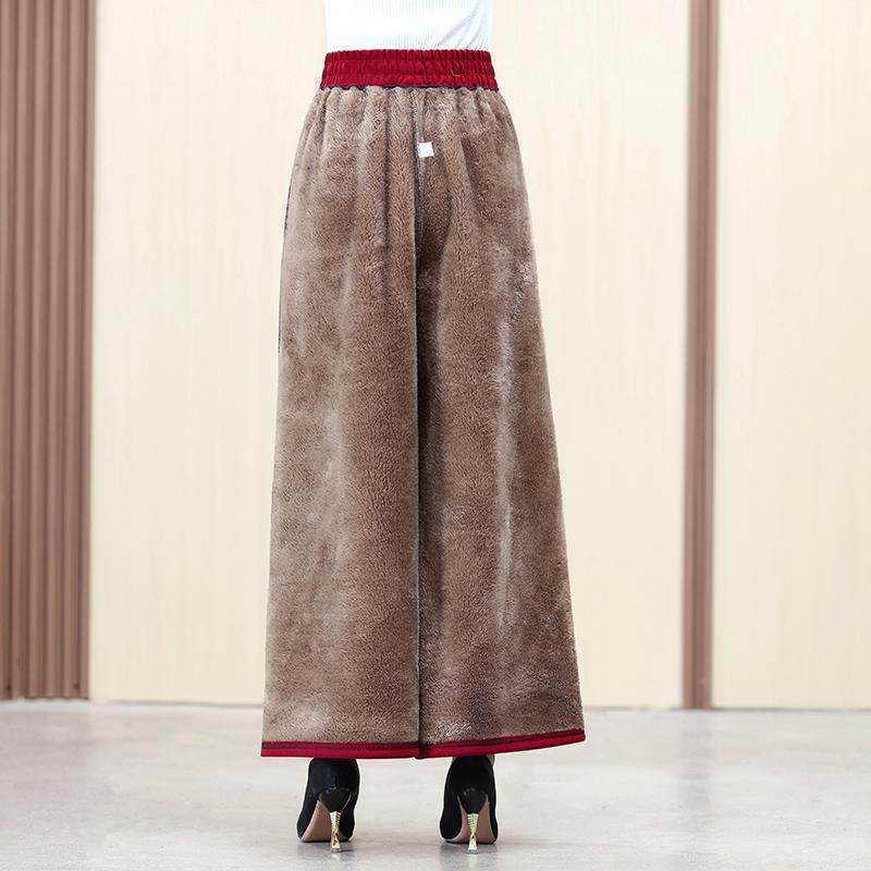 加绒松紧长裤 加厚高腰阔腿裤 宽松保暖洋气休闲裙裤 新款 女2024冬季
