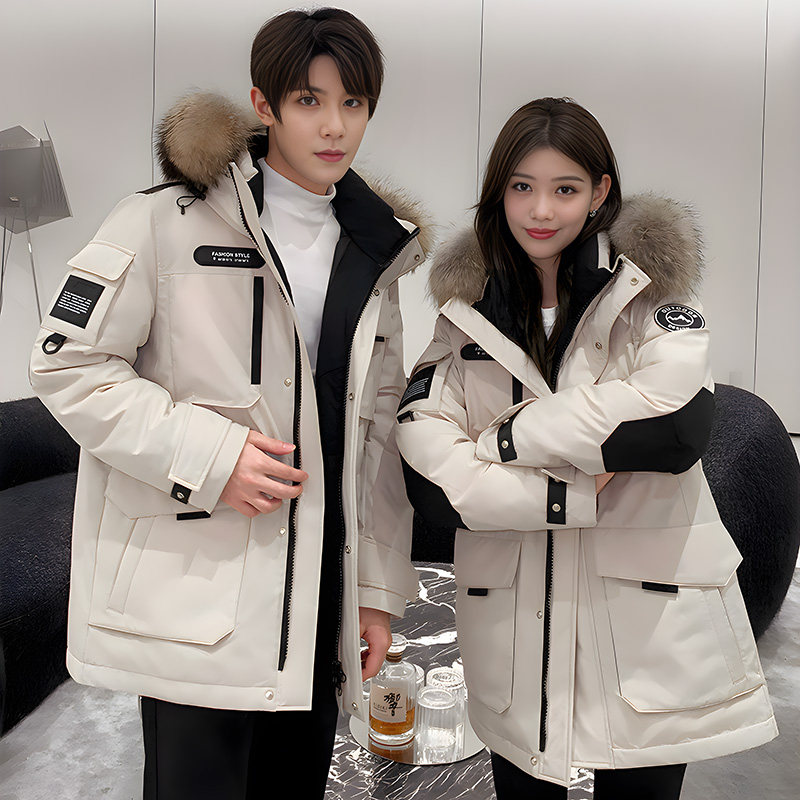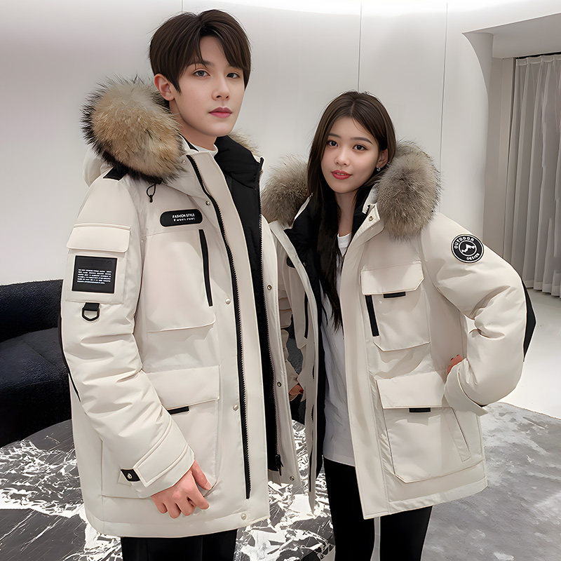 工装 加厚短款 羽绒服男女款 新款 连帽冲锋外套 2025冬季 鸭鸭明星同款