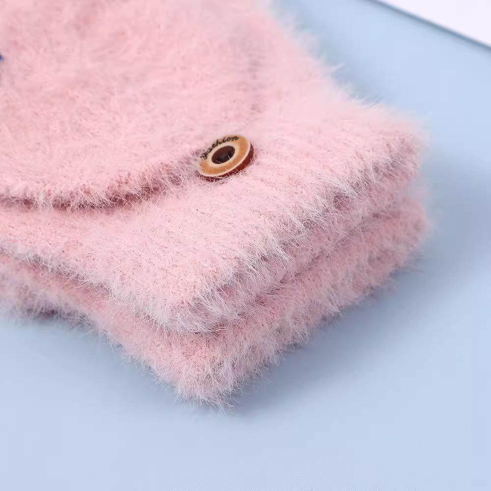 儿童手套秋冬季 保暖可爱小孩卡通库洛米女童半指翻盖宝宝五指写字