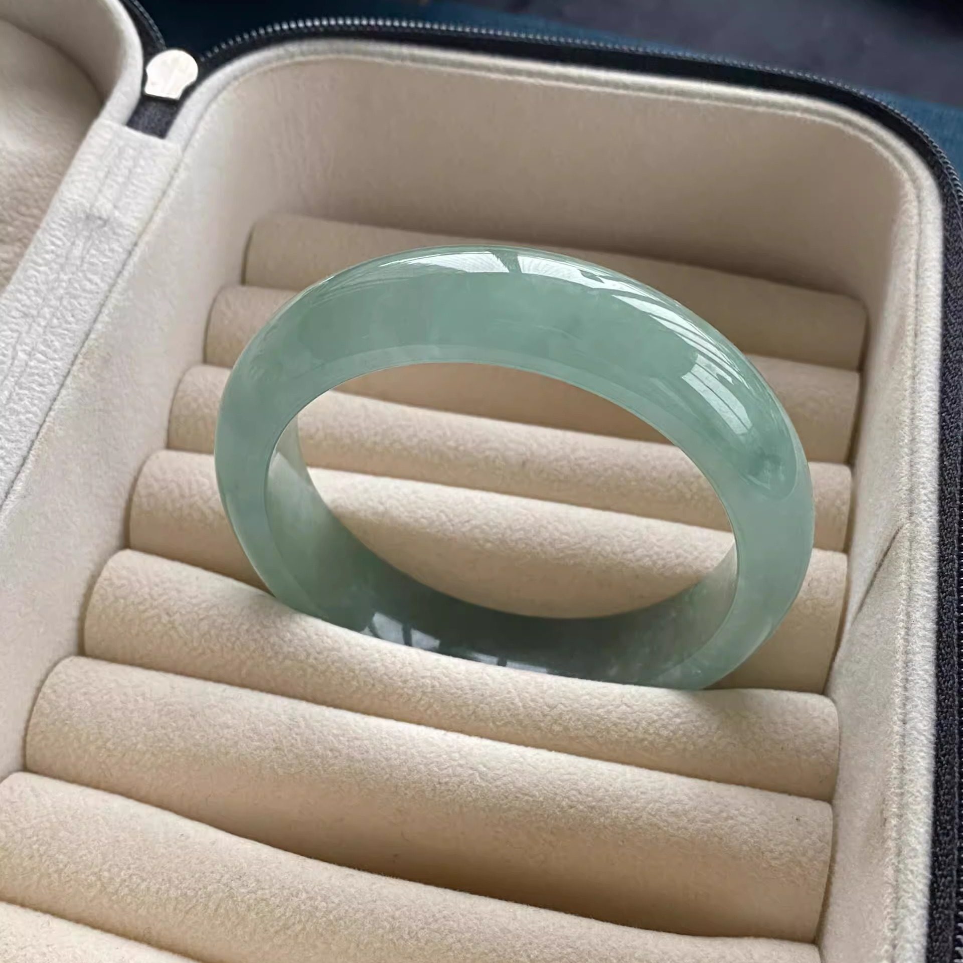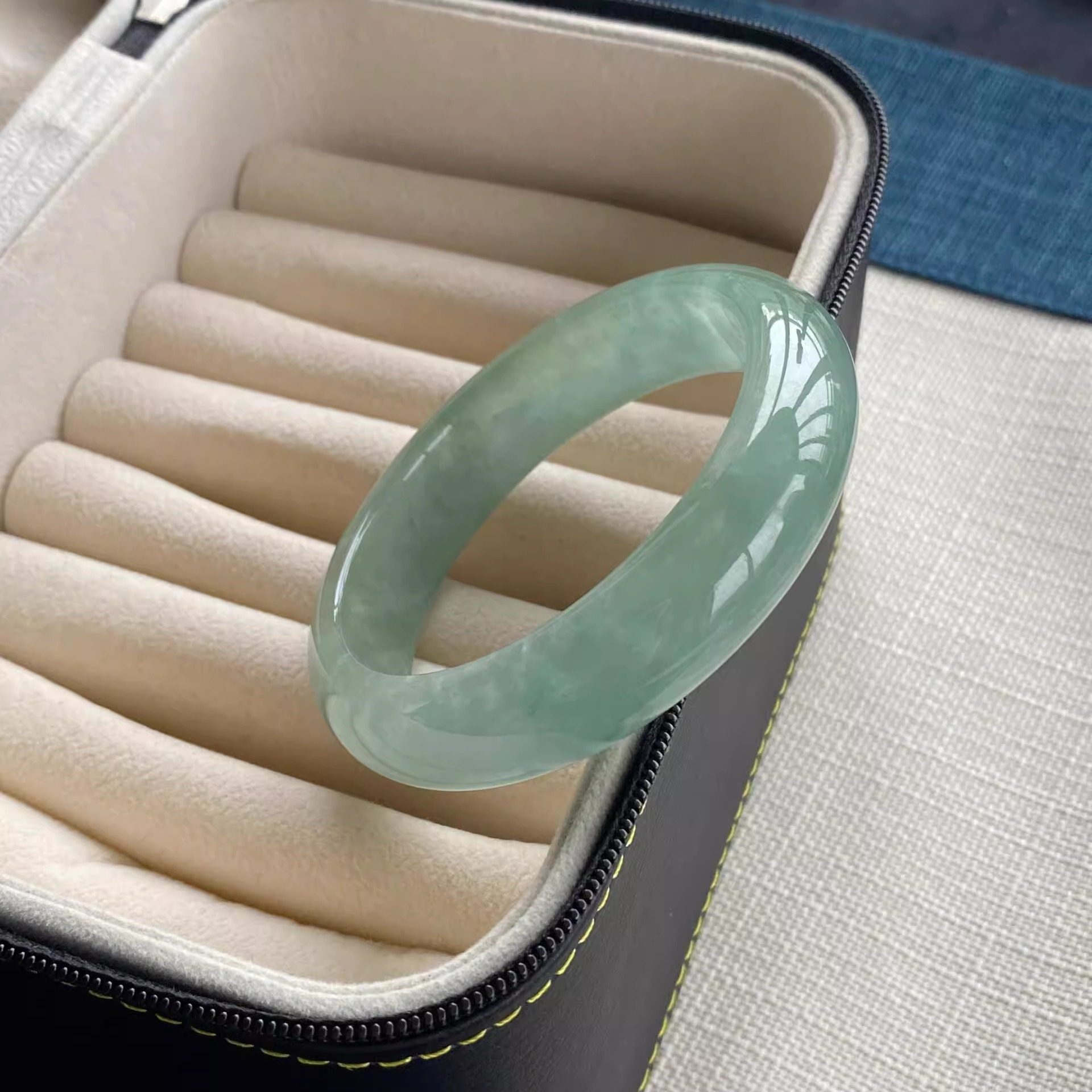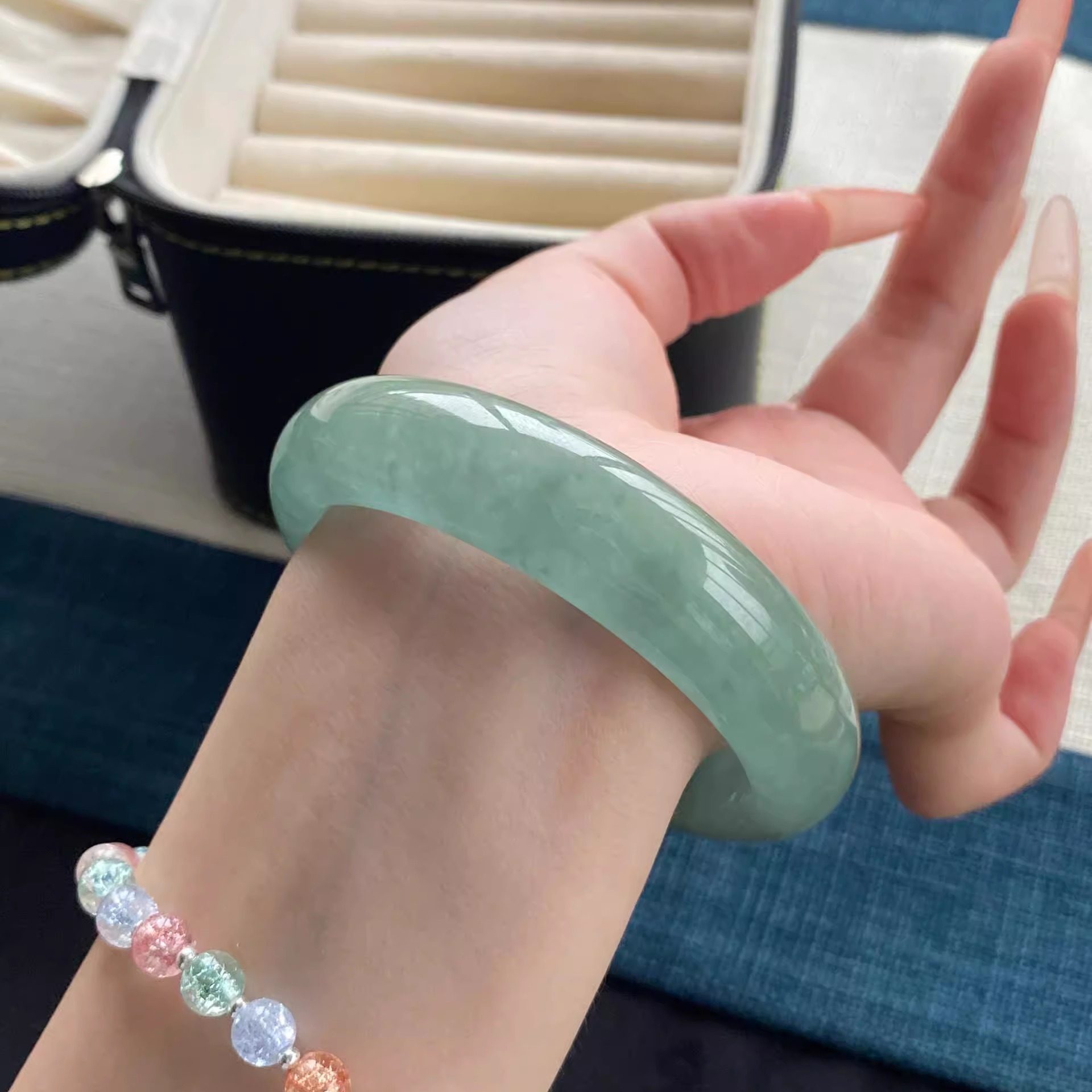 油青飘花正品 缅甸翡翠老坑高冰透女款 玉手镯子 丹青系列 玉长情