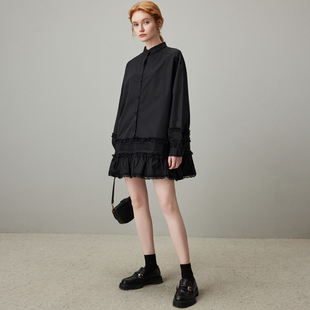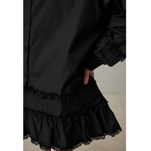 设计感蕾丝边短裙小黑裙 新款 dfvc黑色纯棉衬衫 连衣裙女2025年秋季