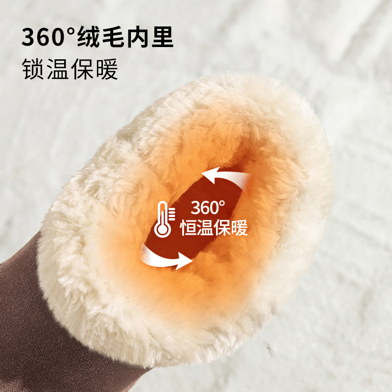 子 牛皮短靴平底面包鞋 达芙妮中筒雪地靴女冬2025新款 保暖东北棉鞋