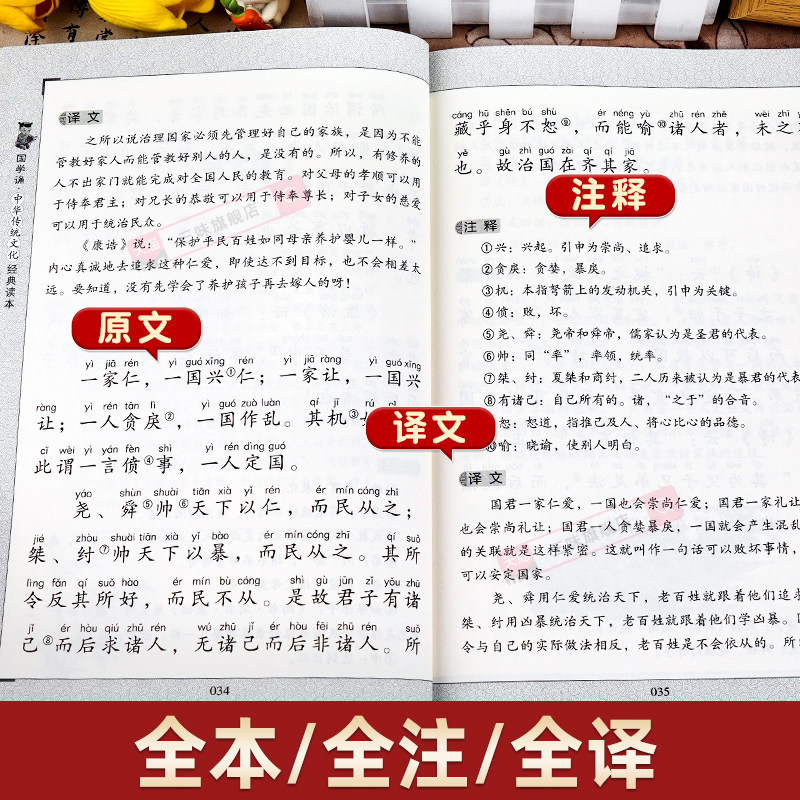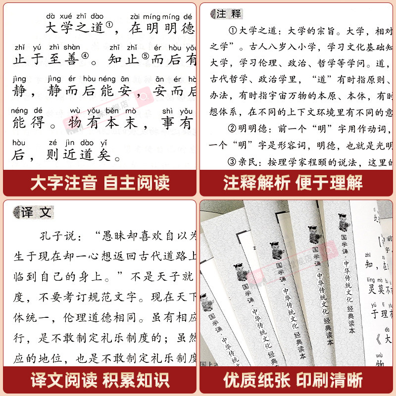 国学诵经典 正版 读本原文原著注释译文全集论语小学生一年级二三年级课外阅读书籍必读中华传统文化启蒙 小学生版 大学中庸注音版