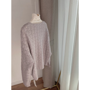 针织衫 470g重磅羊毛衫 275温柔淑女珍珠灰紫色慵懒大毛衣