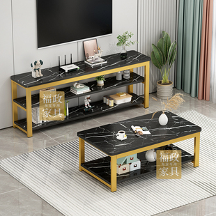 全实木岩板落地电视柜茶几组合现代简约小户型家用客厅高级感轻奢