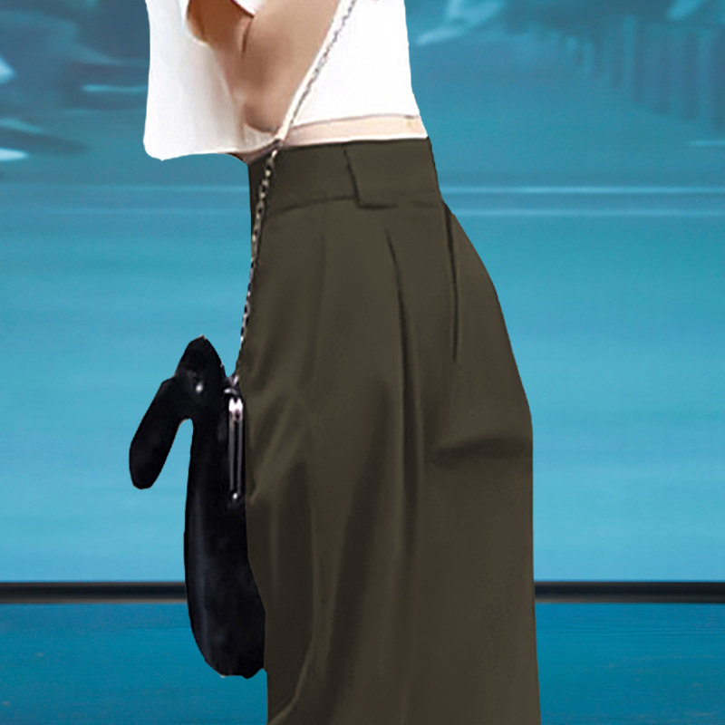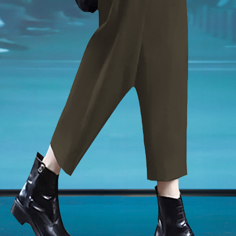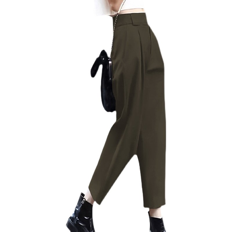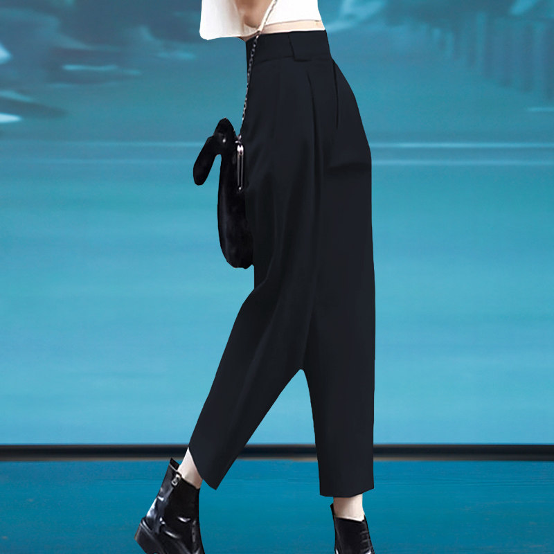 宽松显瘦老爹裤 裤 女九分黑色西装 欧洲站小个子高腰直筒烟管裤