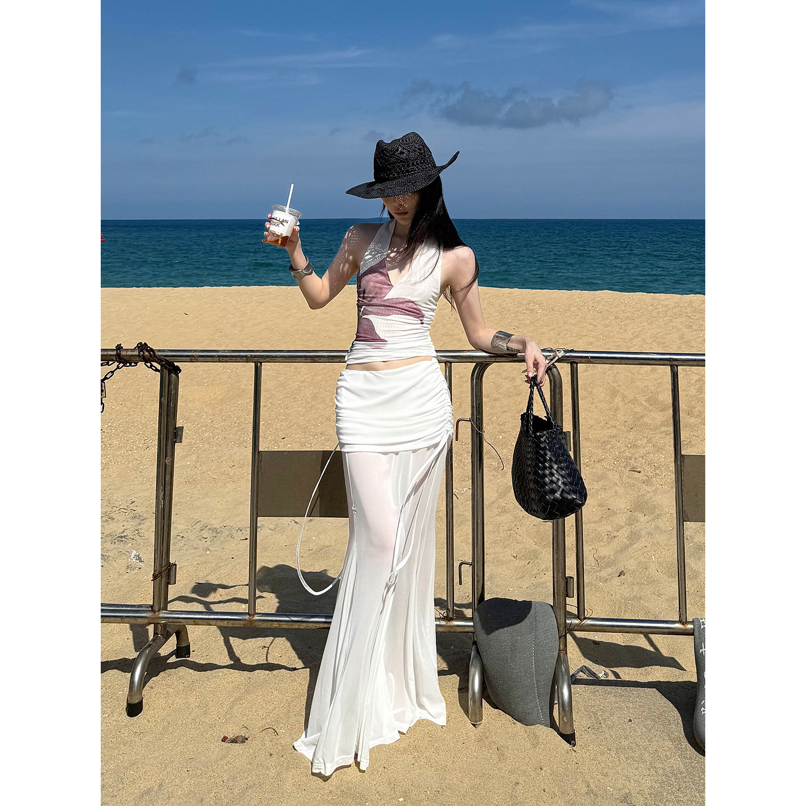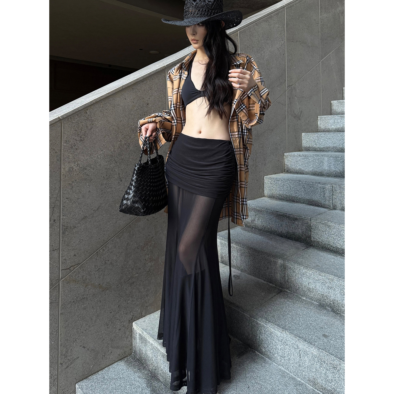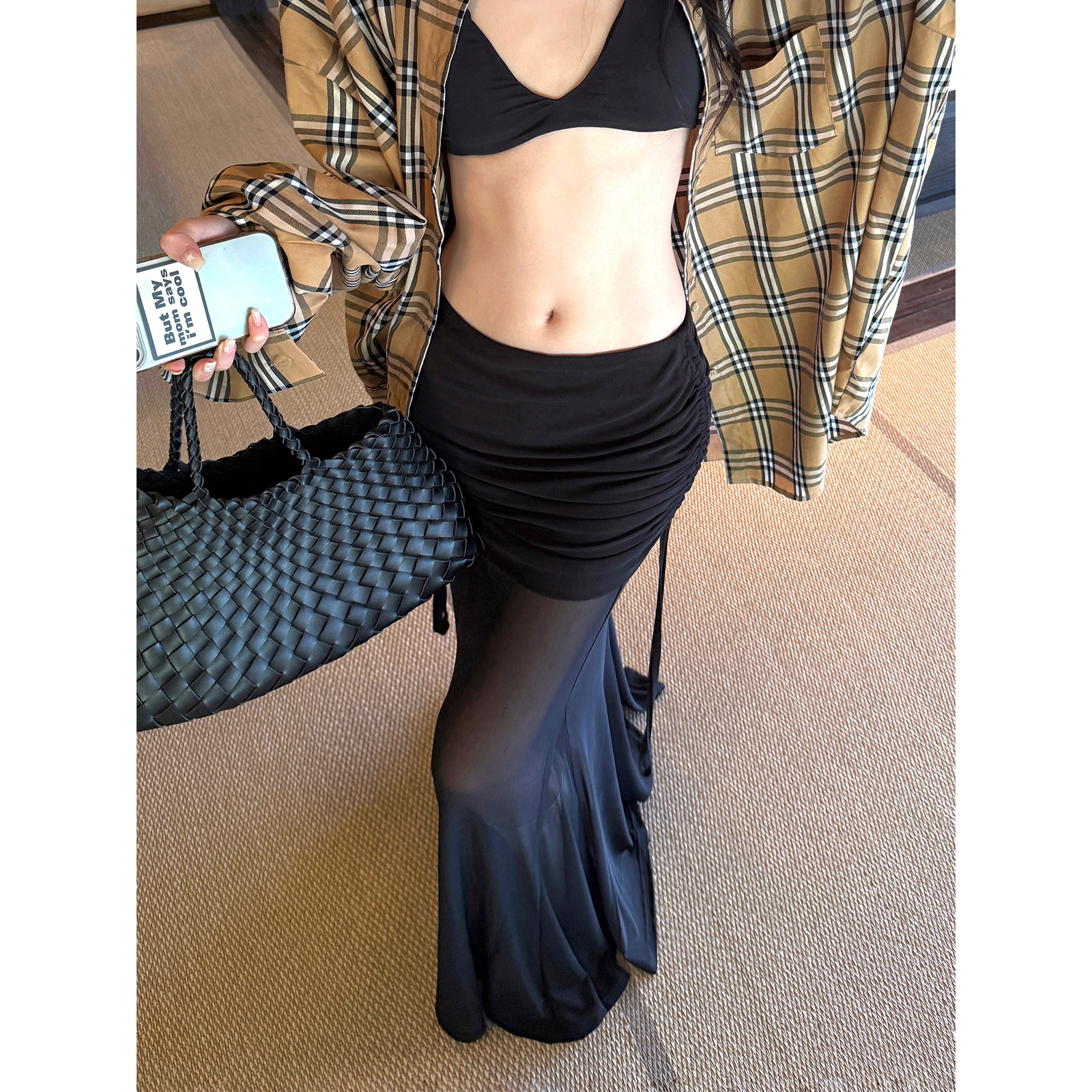 垂坠褶皱透视感网纱裙夏季 0120 气质显瘦百搭长裙 Common