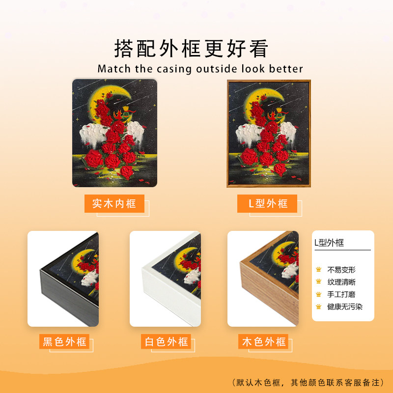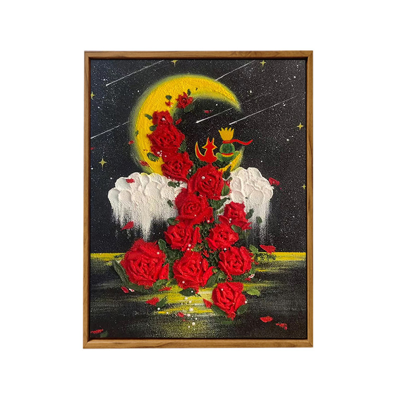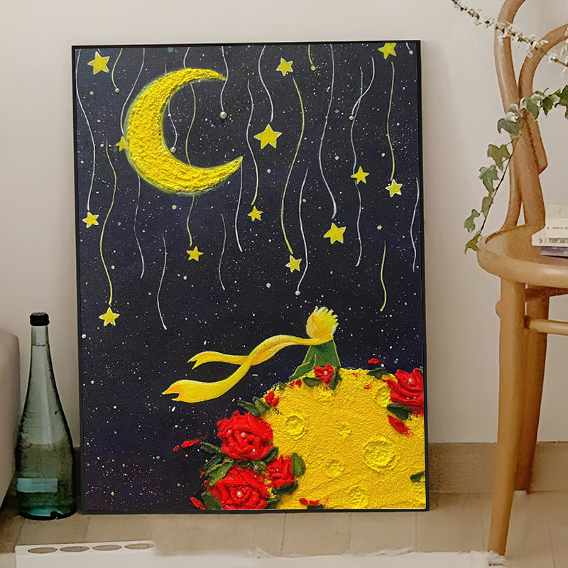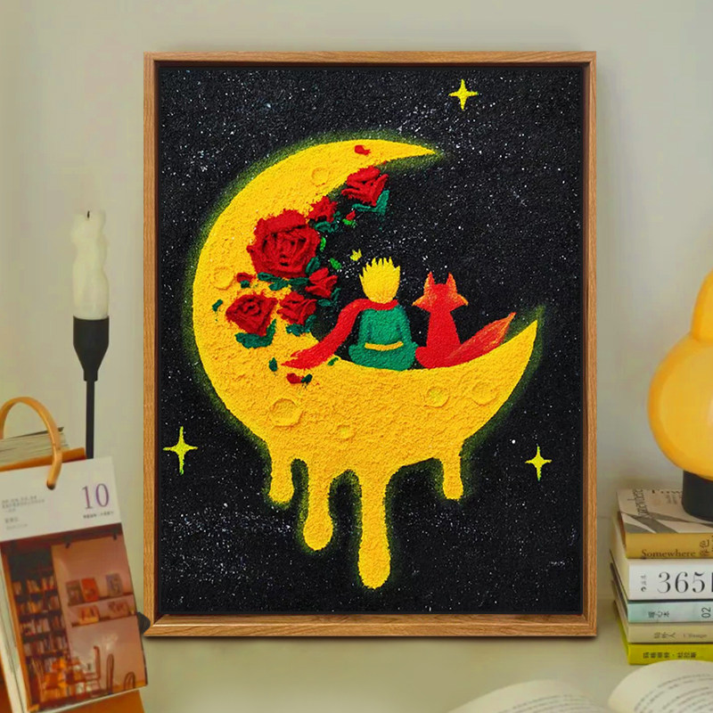 月亮玫瑰小王子石英砂肌理画DIY材料手工填色卡通数字油画装 饰画