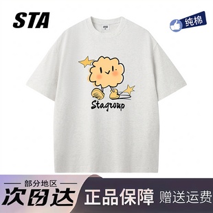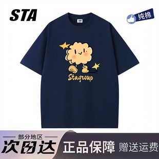 潮牌高街重磅纯棉情侣t恤 男女夏季 STA旗舰店美式 卡通设计小众短袖