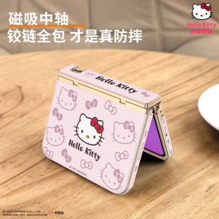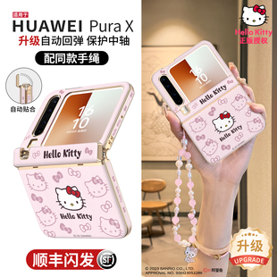 Pura典藏版 适用华为purax手机壳新款 HelloKitty正版 X阔折叠屏磁吸带挂绳手拎高档皮纹斜挎女 中轴铰链全包