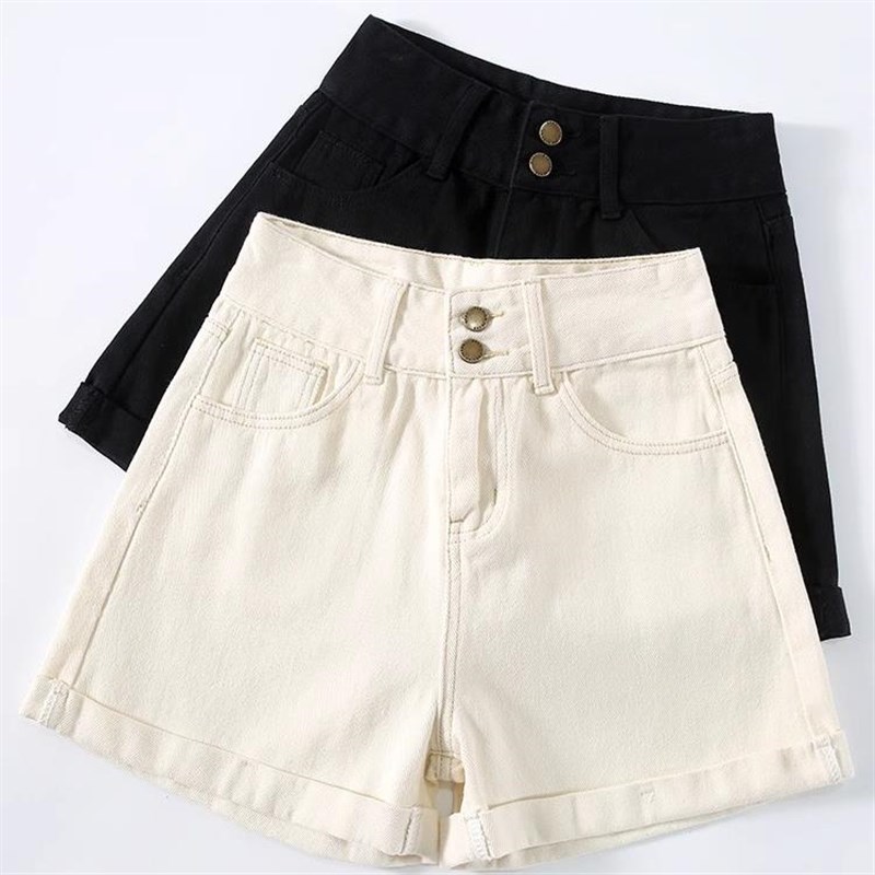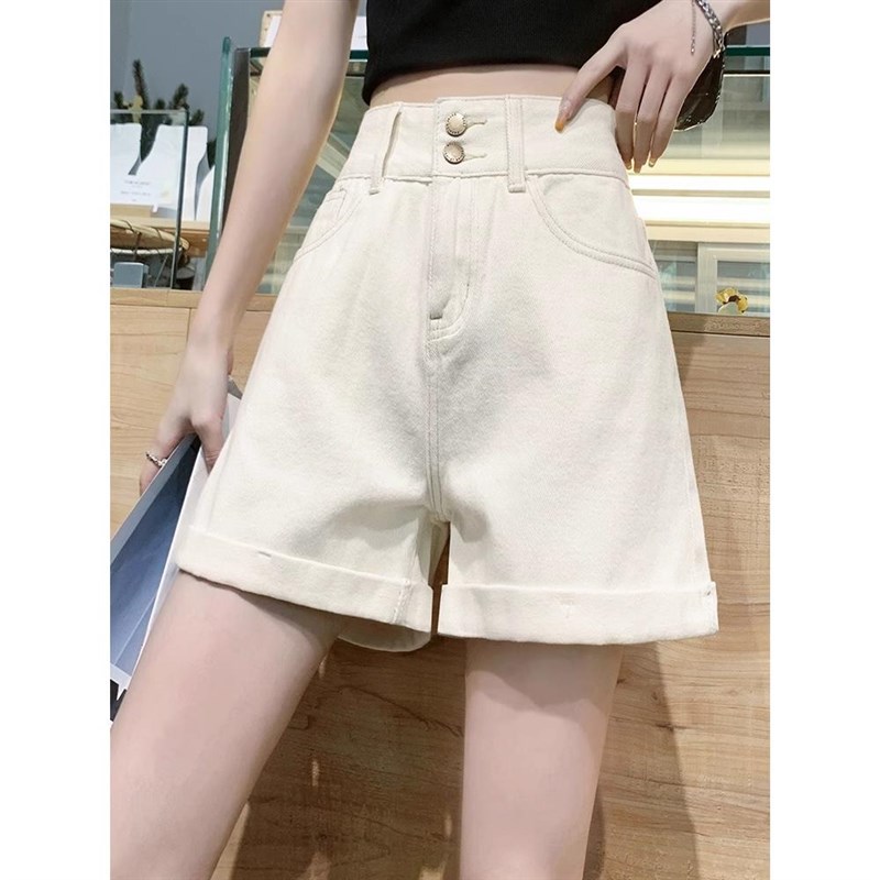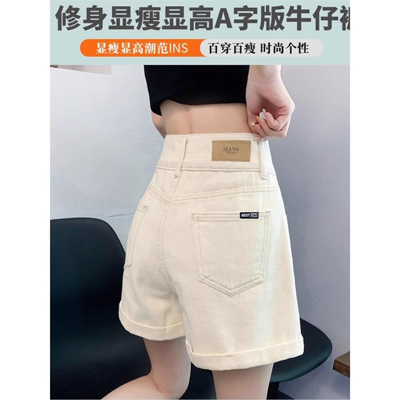 百搭热裤 米白色牛仔短f裤 高腰梨形身材显瘦a字阔腿裤 薄款 女夏季