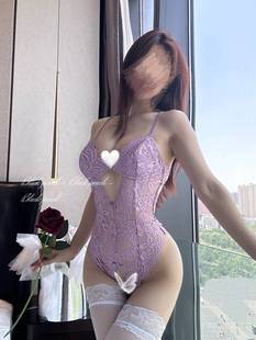 BLACK「欲望失控」性感蕾丝连体衣私房法式 镂空蝴蝶结免脱内衣女