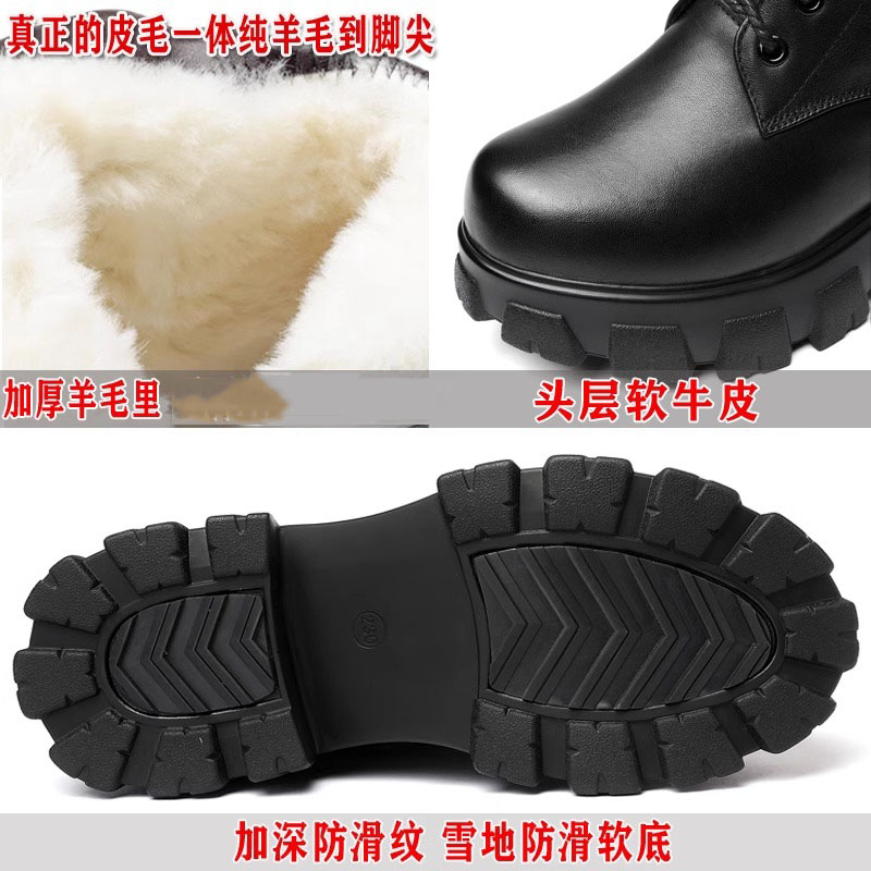 真皮靴子女中筒靴女鞋 棉靴皮毛一体雪地靴 冬加绒加厚羊毛妈妈棉鞋