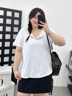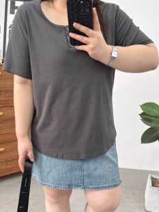 女装 减龄显瘦上衣胖mm设计感正肩短袖 夏装 短款 t恤 新款 大码