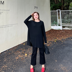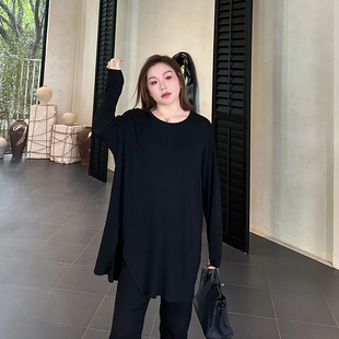 冬季 胖mm松弛感中长款 女装 T恤木子理想大码 休闲宽松开叉内搭T 长袖