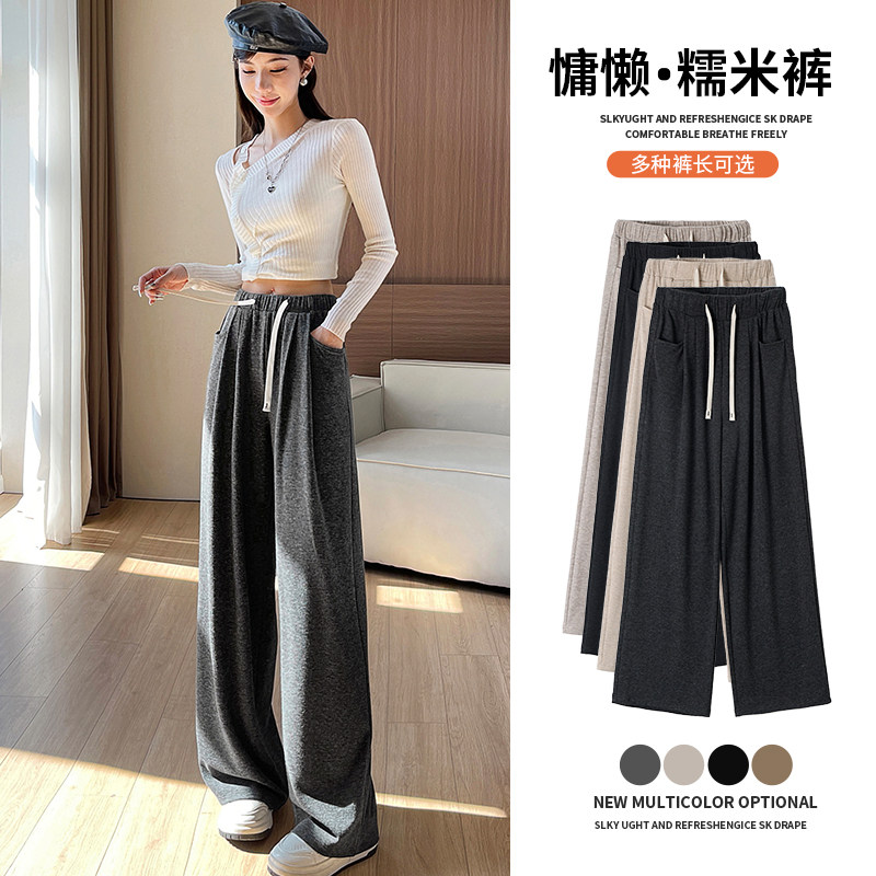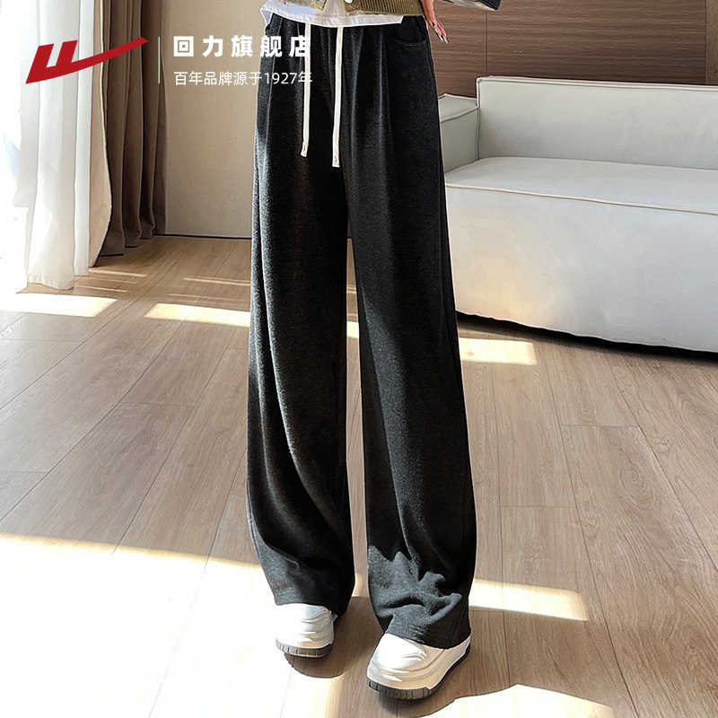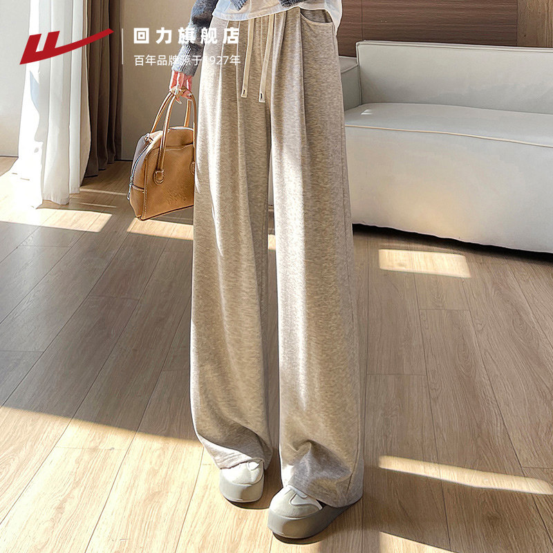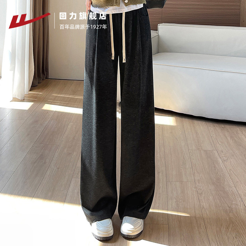 女 高腰慵懒宽松垂感休闲软糯阔腿裤 回力灰色糯米裤 女春秋2025新款