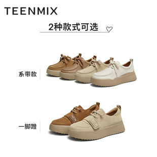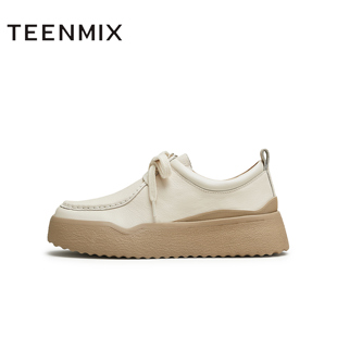 春秋新款 天美意复古休闲鞋 单鞋 女厚底小白鞋 CPP24CM4 英伦皮鞋