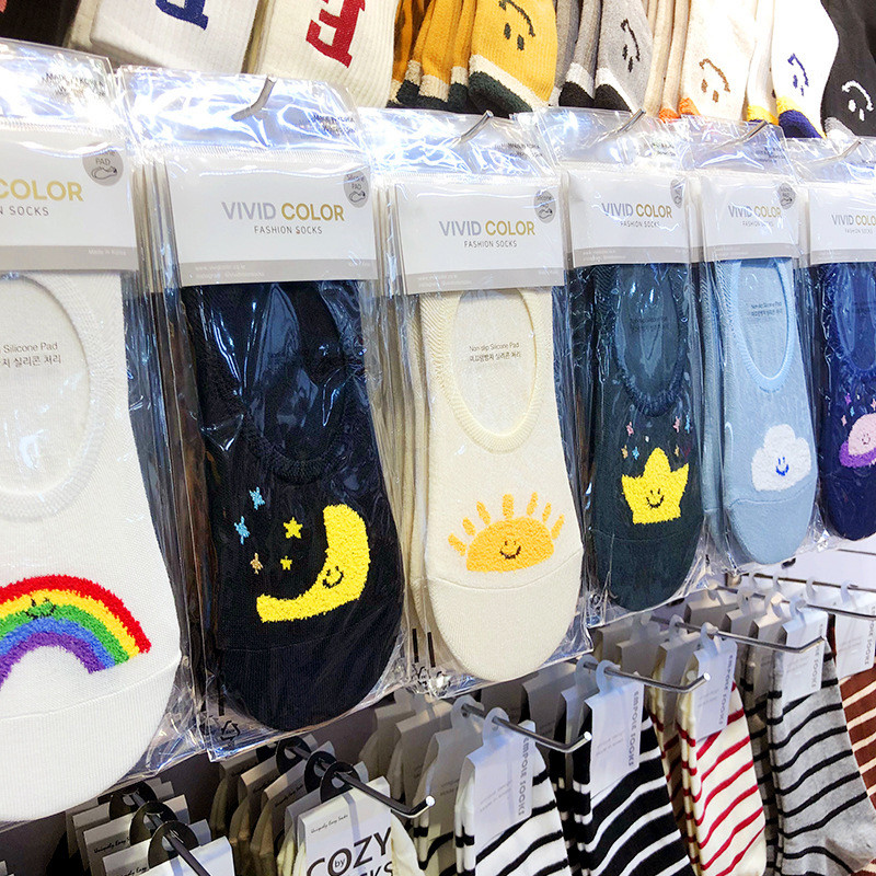 浅口运动 新款 灰色小熊袜子韩版 船袜女纯棉不掉跟防滑脱不掉跟秋季