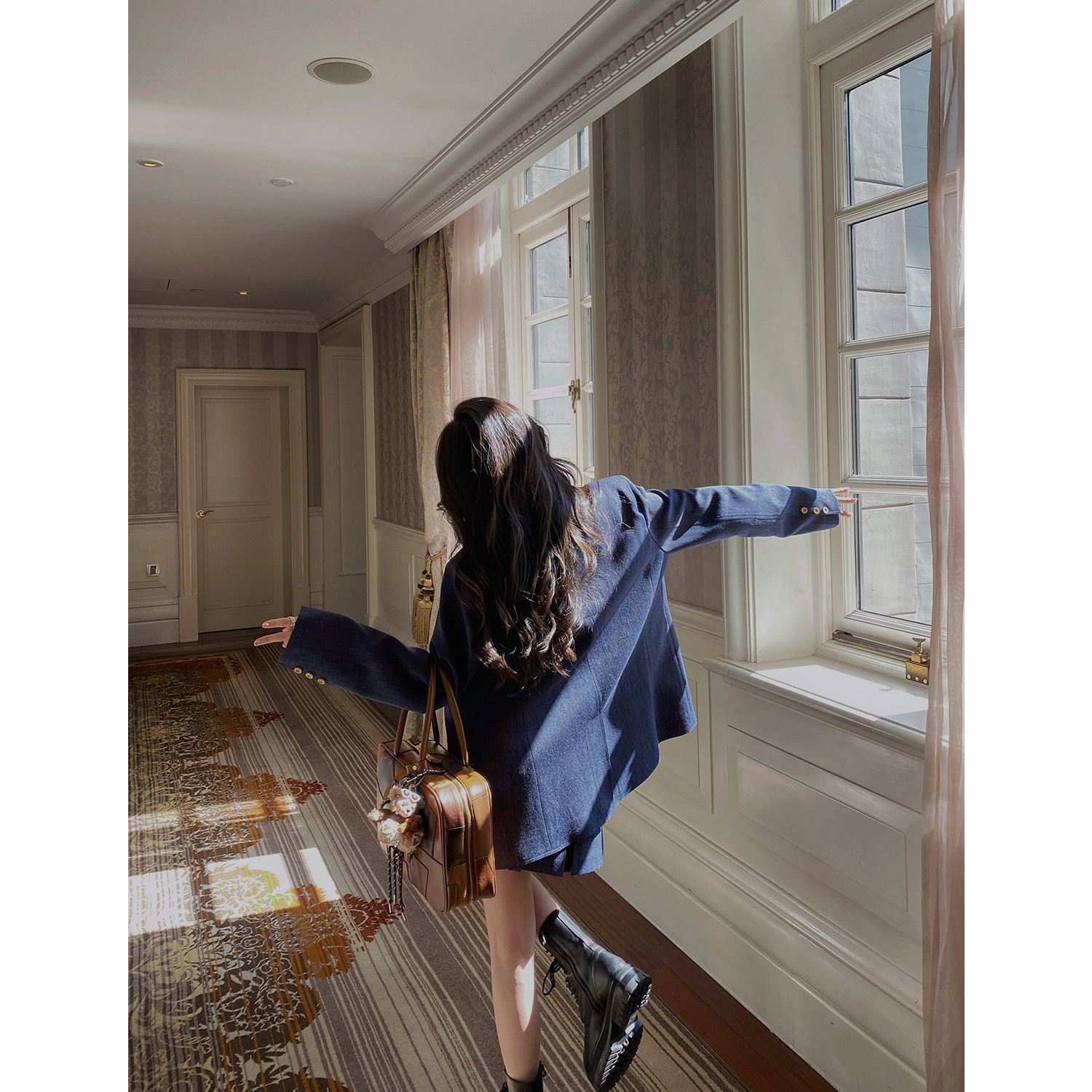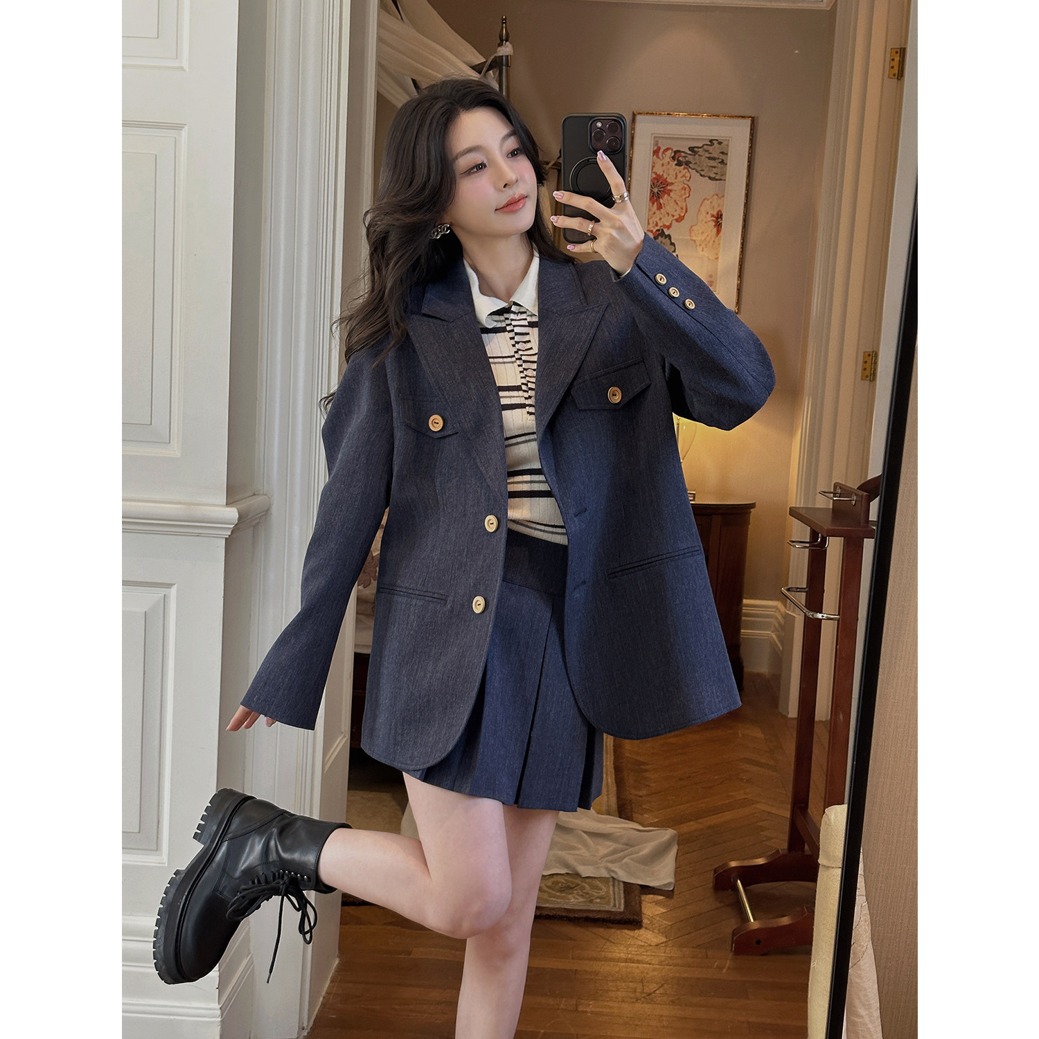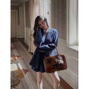 半裙 外套 MINI STUDIO徐琳「布鲁斯蓝」减龄藏青杂色木质扣西装