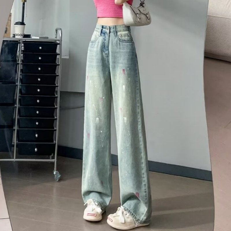 牛仔裤 慵懒高腰裤 2025新款 微弹修身 1236909 水洗阔腿牛仔裤 HM女装