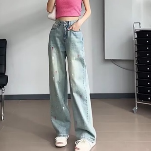 森马牛仔裤 显瘦港风微喇长裤 女春季 2026新款 做旧宽松喇叭裤 森柔