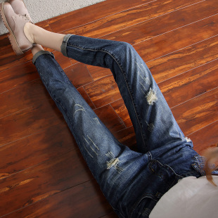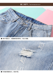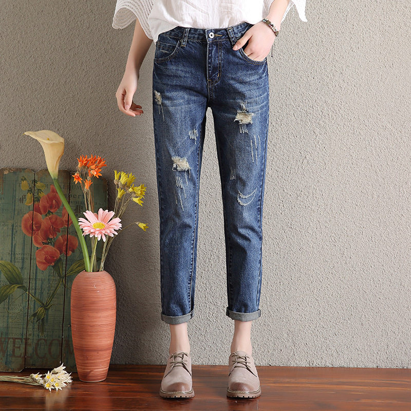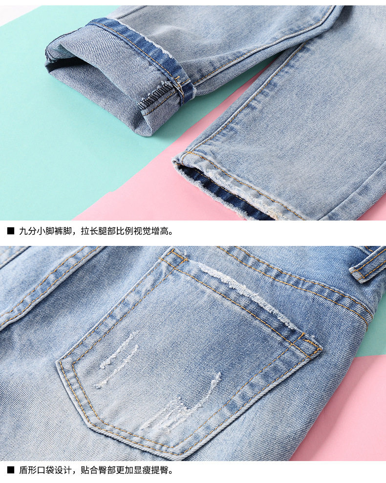宽松高腰破洞直筒九分欧货哈伦155老爹牛仔裤 2026春夏新款 薄韩版