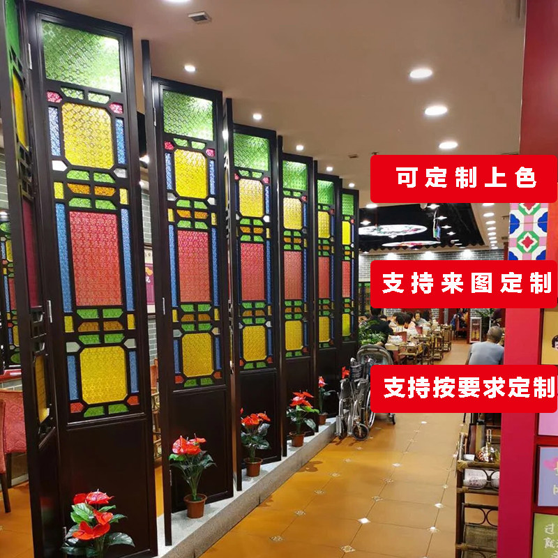 简约新中式 艺术玻璃隔断入户门客厅玄关磨砂双面透光半墙玻璃屏风