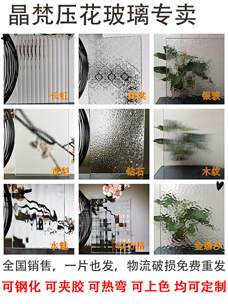 压花玻璃有色镜片夹丝夹胶样板超白长虹银波纹水纹拿样专用链接