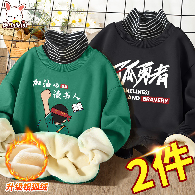 男孩 加厚打底冬装 男童加绒卫衣儿童高领保暖上衣冬季 小童2025新款